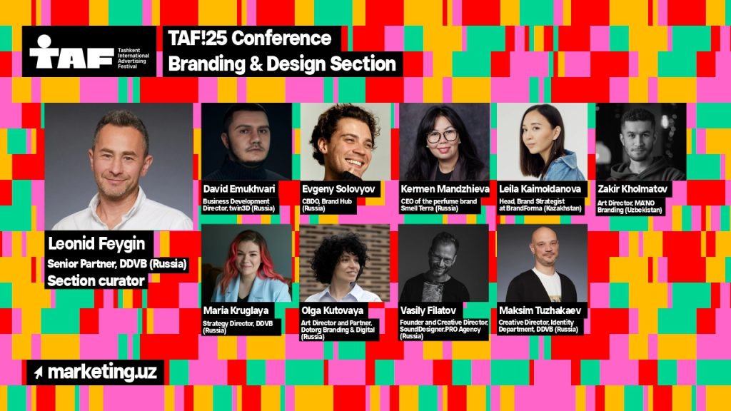 - 10:30 – 10:50 Maksim Tujakayev, DDVB brending agentligining “Aydentika” yo‘nalishi kreativ direktori (Rossiya) Mavzu: Brending olamlari